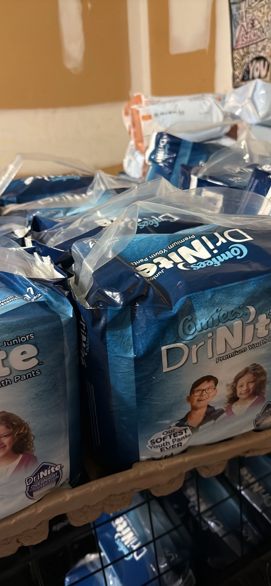 16 packs of Comfees DriNite premium youth pants L/XL 60- 125 + Lbs 27 -57 +kg 13 youth pants per pack Pick up or meet up ⬆️ in Powder Springs Ga 301