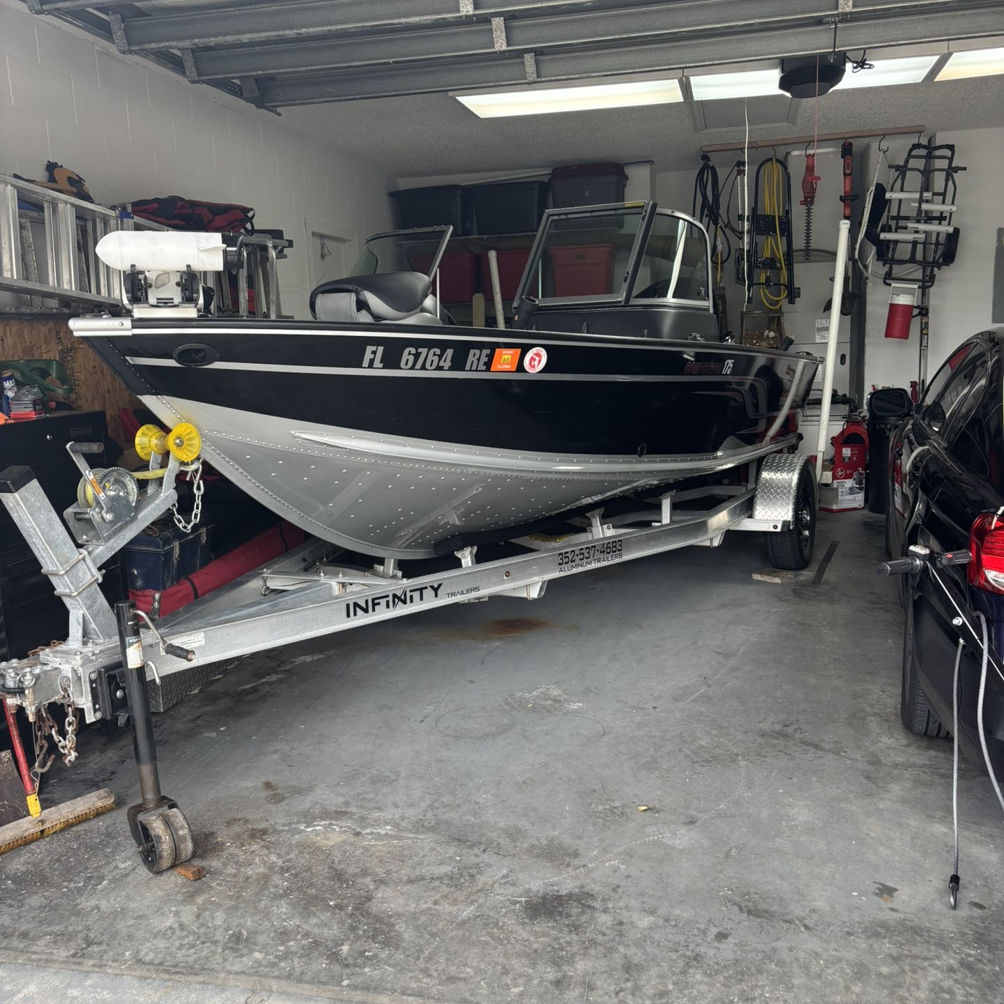It has two live wells a new trolling motor detachable blue tooth radio a jump seat a Bimini new tires on the trailer and spare a collapsible tongue on the trailer and a 115 h mercury.I’m asking 15,000 and a cover
