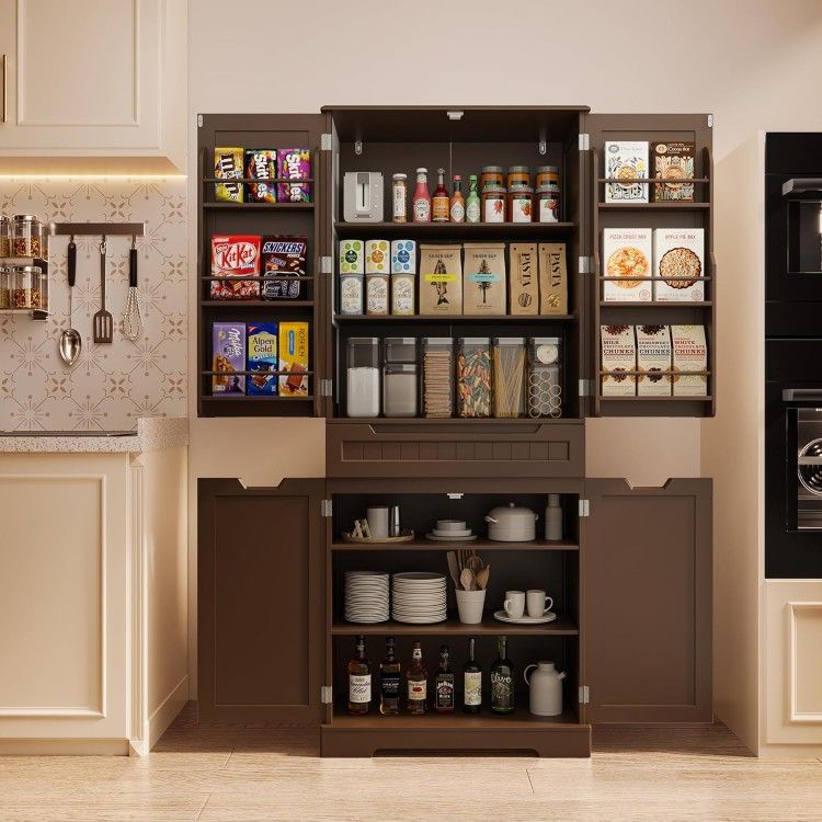 71" Kitchen Pantry Storage Cabinet with Doors and Shelves Large Bathroom Storage Cabinet Freestanding with Drawer Wooden Sideboard Buffet Cabinet for Dining Room Craft Room, Dark Brown Brand new On Sale !! Very Good quality!! ***PRICE IS FIRM*** ***First Come First Serve*** *Check Size Details* Click on my profile listing to check more items. Our warehouse is located near Katy Legacy Stadium If you would like to come pick up DM me or call for address About this item [ ๐๐๐๐ฒ๐บ๐ฏ๐น๐ ๐ง๐ฎ๐ธ๐ฒ๐ ๐ง๐ถ๐บ๐ฒ ๐๐๐ ๐ช๐ผ๐ฟ๐๐ต๐๐ต๐ถ๐น๐ฒ ] - Please take note that the assembly process requires amount of time due to the numerous parts that need to be put together. However, we provide easy-to-follow assembly instructions with pictures, along with 46 labeled pieces. Additionally, having an extra pair of hands can expedite the process. We guarantee that the final outcome will exceed your expectations. [ ๐๐ฎ๐๐ฒ ๐ฃ๐ฟ๐ผ๐ฏ๐น๐ฒ๐บ ๐ช๐ถ๐๐ต ๐๐๐๐ฒ๐บ๐ฏ๐น๐? ] - Rest assured, the pantry cabinet is accompanied by all necessary accessories and installation instructions. Furthermore, we offer service throughout the installation process. If you encounter any difficulties, such as missing parts or damage, please do not hesitate to reach out to us. [ ๐๐ฎ๐ฟ๐ด๐ฒ ๐ฆ๐๐ผ๐ฟ๐ฎ๐ด๐ฒ ๐๐ฎ๐ฝ๐ฎ๐ฐ๐ถ๐๐ ] - The generously sized kitchen pantry cabinet is designed to meet your individual storage needs. This cabinet is perfect for holding teas, coffees, fruit powder, cereals, rolls, and chips in top cabinet, small snack packs and dips in the drawer, and keep your gluten free foods and ingredients or cookware and small appliances in the bottom cabinet. [ ๐ฆ๐๐๐ฟ๐ฑ๐ ๐๐ป๐ฑ ๐ฆ๐ฎ๐ณ๐ฒ ] - Made of high-quality painted MDF board with a waterproof surface, our bathroom storage cabinet is designed to withstand moisture and steam, making it ideal for use in bathroom, restroom and laundry room. Please use the included anti-toppling kits to help to secure the cabinet to the wall, which can ensure extra stability and safety. [ ๐ ๐๐น๐๐ถ๐ฝ๐๐ฟ๐ฝ๐ผ๐๐ฒ ๐๐ฎ๐ฏ๐ถ๐ป๐ฒ๐ ] - This white elegant kitchen pantry cabinet is a stylish furniture with cutout handles, magnetic door and slide out smoothly metal tracks. The elegant white finished color and texture makes it easy to match with any type of furniture in bathroom, restroom, entryway, laundry room, craft room. [ ๐ฆ๐ฝ๐ฒ๐ฐ๐ถ๐ฎ๐น ๐๐ฒ๐ฎ๐๐๐ฟ๐ฒ๐ ] - This pantry cabinet boasts a notable array of features, including a generously sized drawer and an adjustable shelf that can be easily modified to accommodate items of differing heights to meet your individual storage needs.
