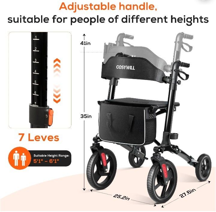 COSYWILL Walkers for Seniors,Foldable Rollator Walker with Seat,Mobility Walkers with 10" Big Wheels, Adjustable Handles and Backrest Height,.LIKE NEW CONDITION