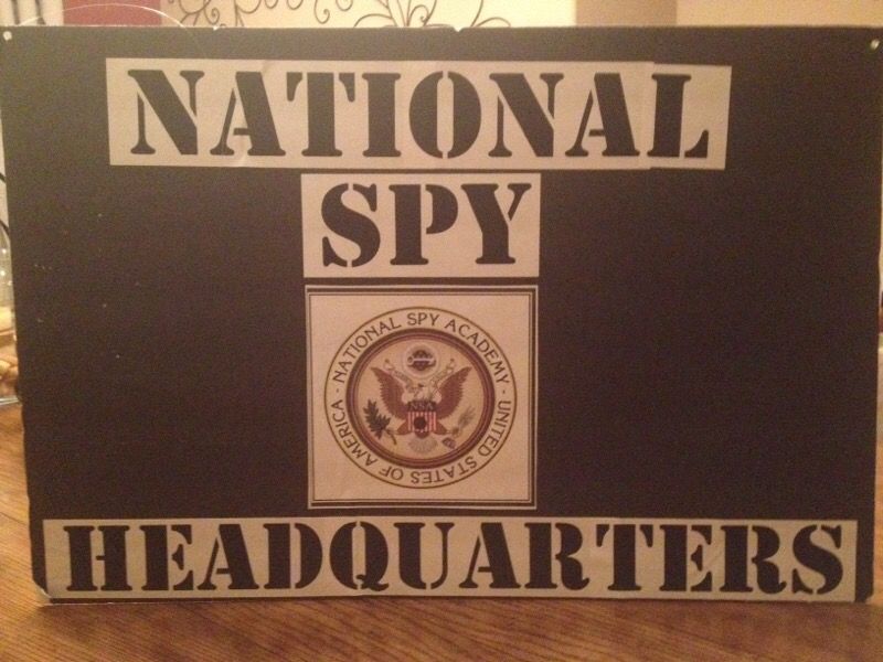 Spy party sign. I used this sign for all agent recruits reporting to headquarters for training.