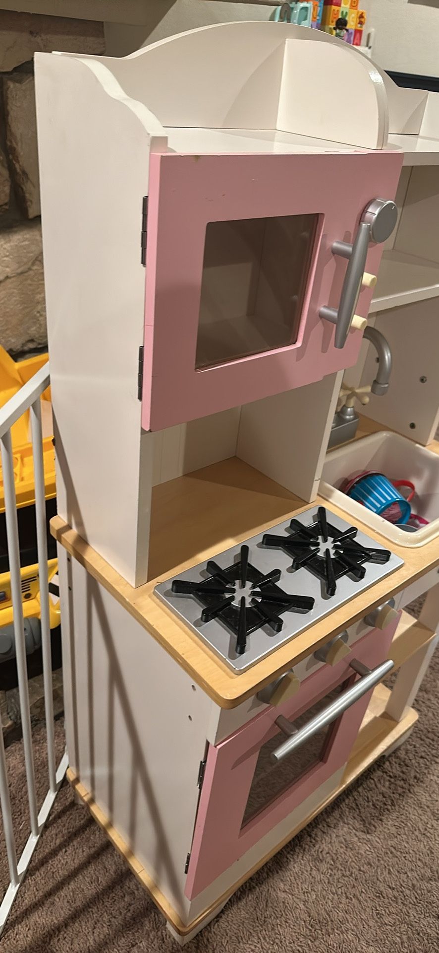 In great condition Has attached chalkboard small for small areas Has a lot of life in it and a great addition for your toddlers play, perfect for your little one to keep entertain and pregame play. Very realistic and great quality. Sturdy! Nice size