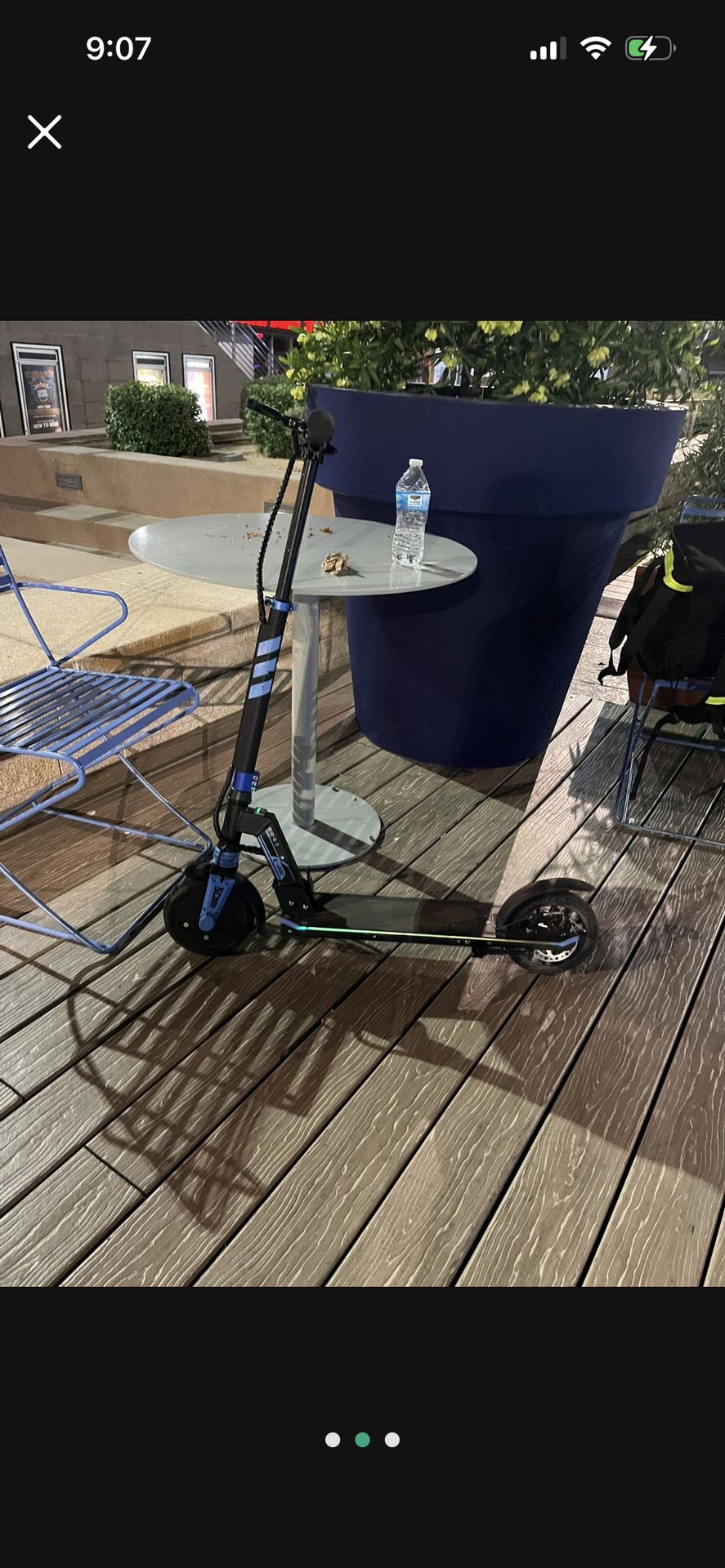 If you’re tired of big/bulky scooters try this ultra slim model! Has a powerful 250 w motor , a weight capacity of 250 lbs , and can go a total of 12 miles at a speed of 12 mph in one charge. Comes with everything you need including charger, and is packed with a kick stand, and under lights. It even comes with a cell phone holder pre installed !!