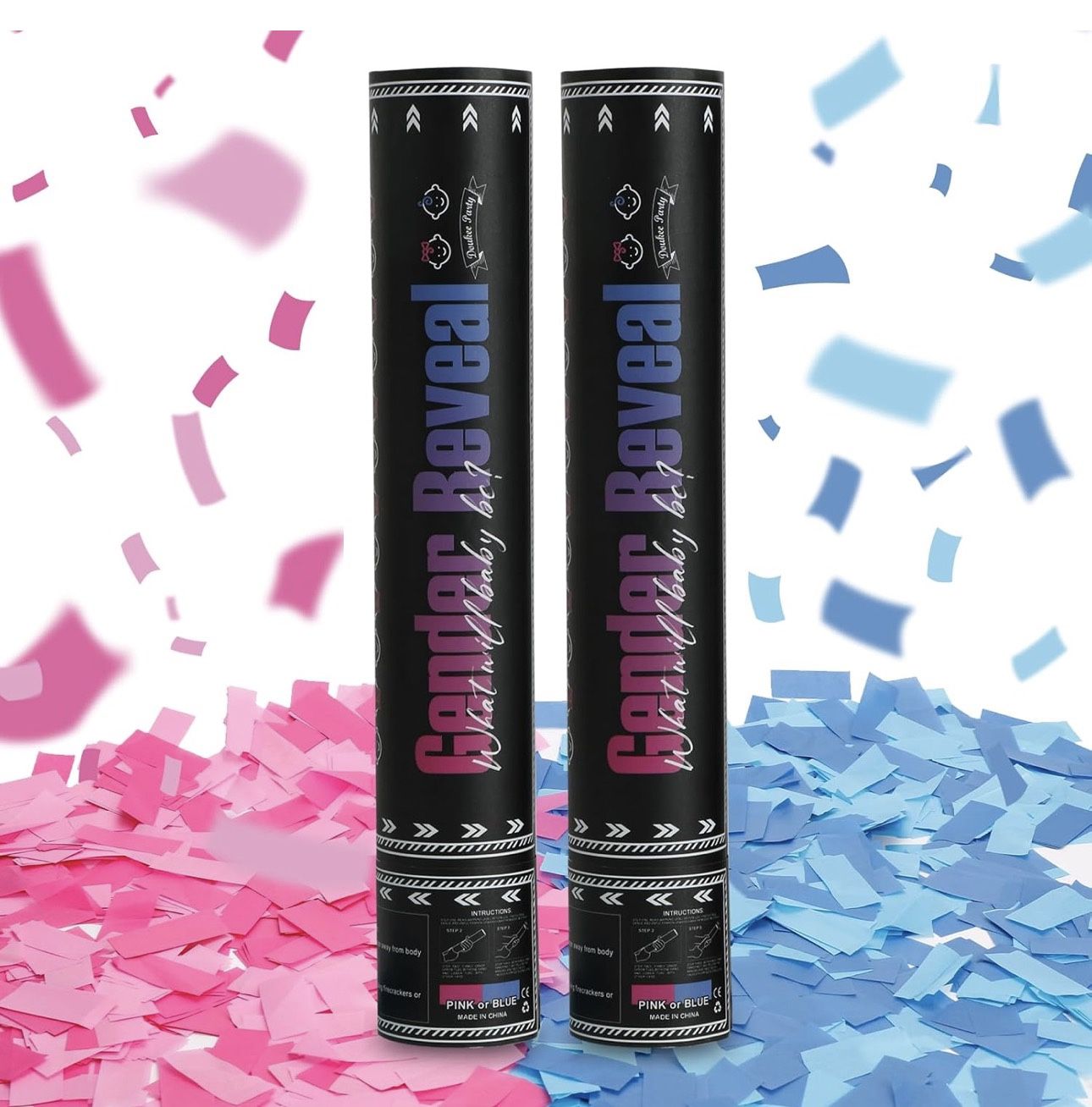 Gender Reveal Confetti Cannon, DOUKEE Biodegradable Pink or Blue Confetti Poppers Baby Shower Cannon for Boy or Girl Baby Reveal Party Supplies 2PK (1Pink 1Blue)