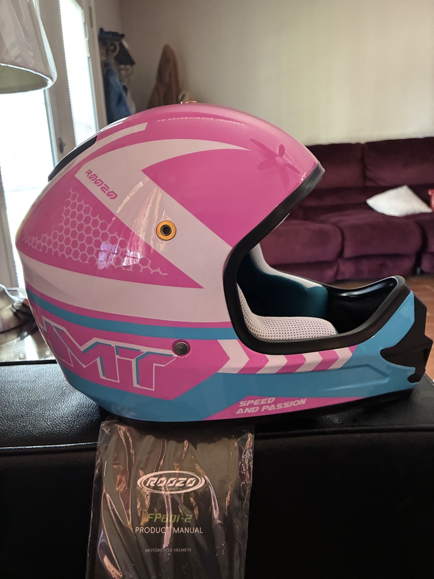 Youth Dirt Bike Helmet DOT Certified, Includes Adjustable Goggles & Protective Gloves PINK Small