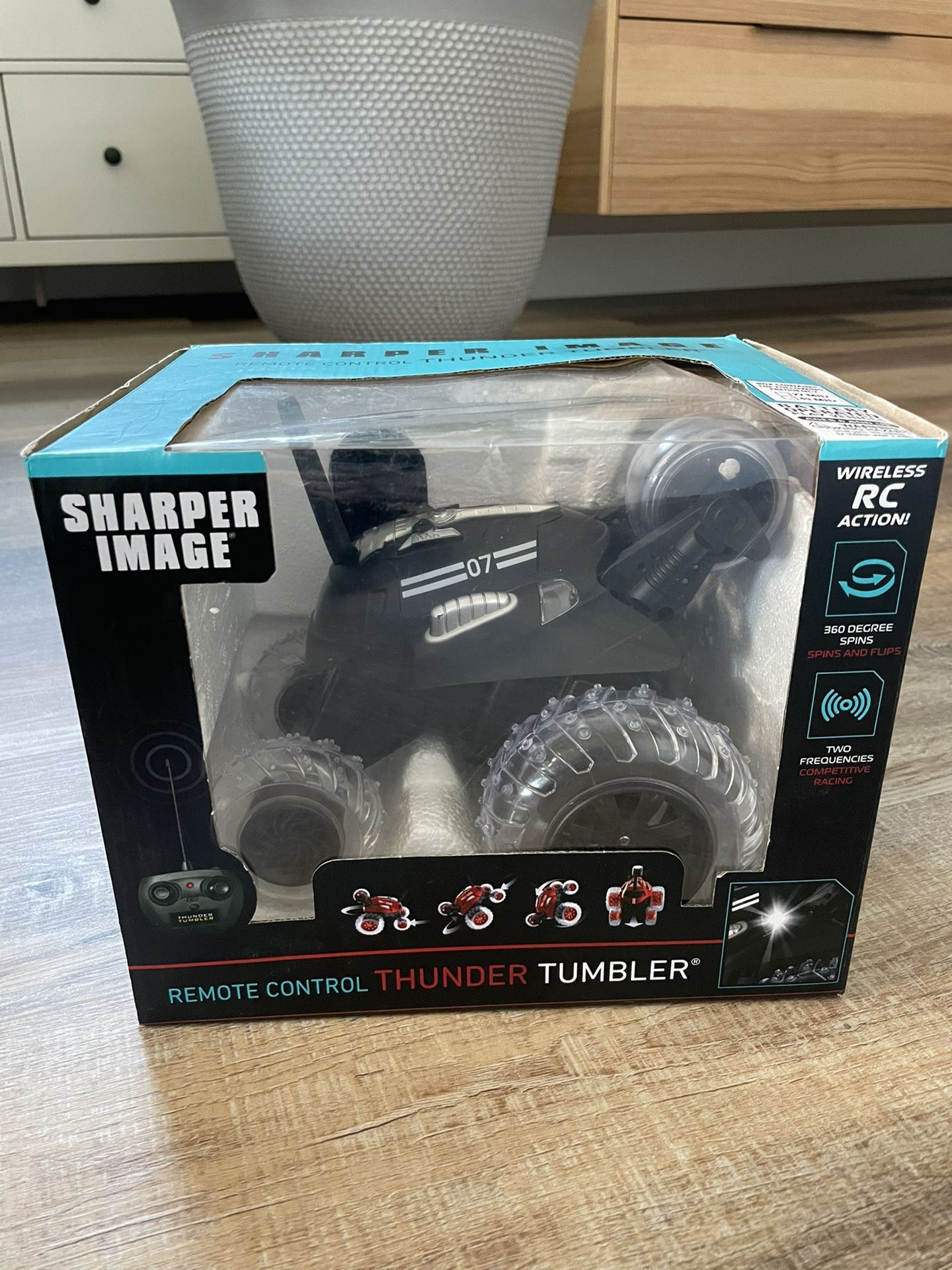 Sharper Image Remote Control Thunder Tumbler. Black remote control, 360 spins & flips, two frequencies, wireless RC car. Good Birthday Gift. -Brand New!!!