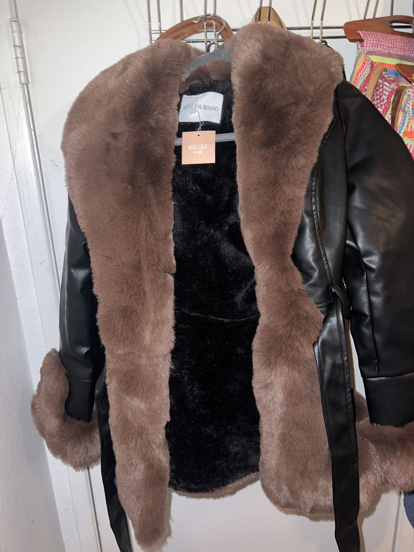 Miss Lola leather fur coat Size M/L Never worn brand new Bought it for $120 selling it for $80