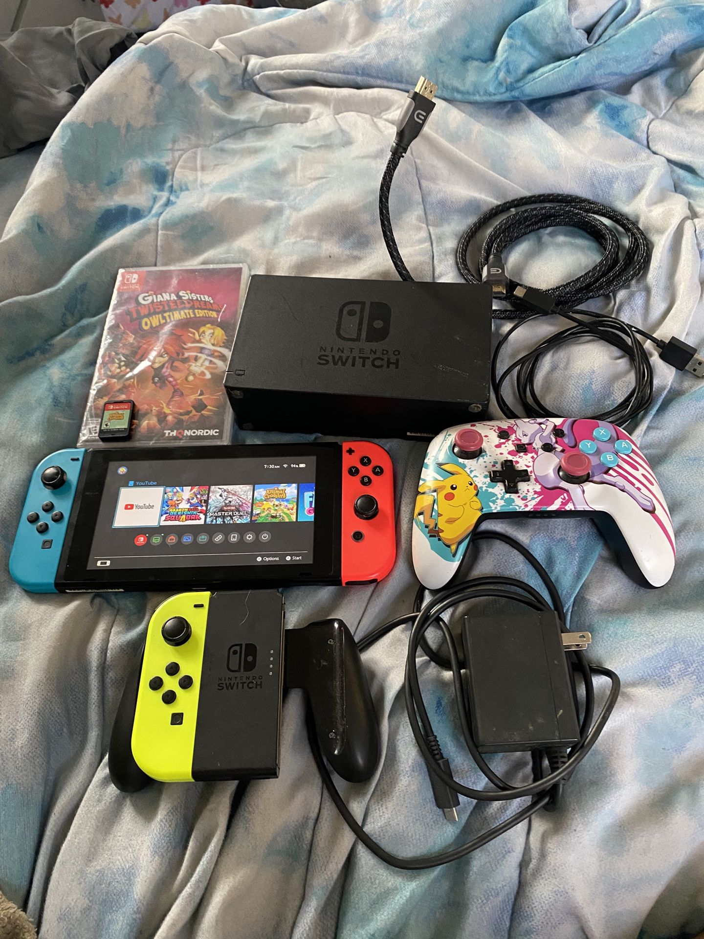 I am selling this for $250 obo. Trades are open too. Everything works as it should. Here's what it comes with: Switch, Dock, HDMI cable, charging cable, USB C cable, 2 extra controllers, dock and 2 games. Cash or CashApp and Pick-Ups only.