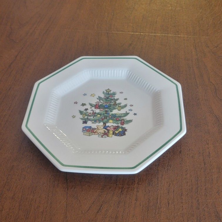 Nikko CHRISTMAS TIME Classic collection Christmas Tree OCTAGON Dessert Plate 8 1/8". Made in Japan. Pre-owned, very good shape, no chips or cracks.