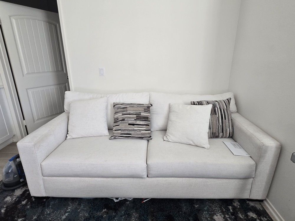 Barely used, pet friendly home. Was never really used as a couch, was mostly used as leaving fresh laundry on it to fold. Paid $880 plus tax on it. Dimensions are L 87" W 44" H 31"