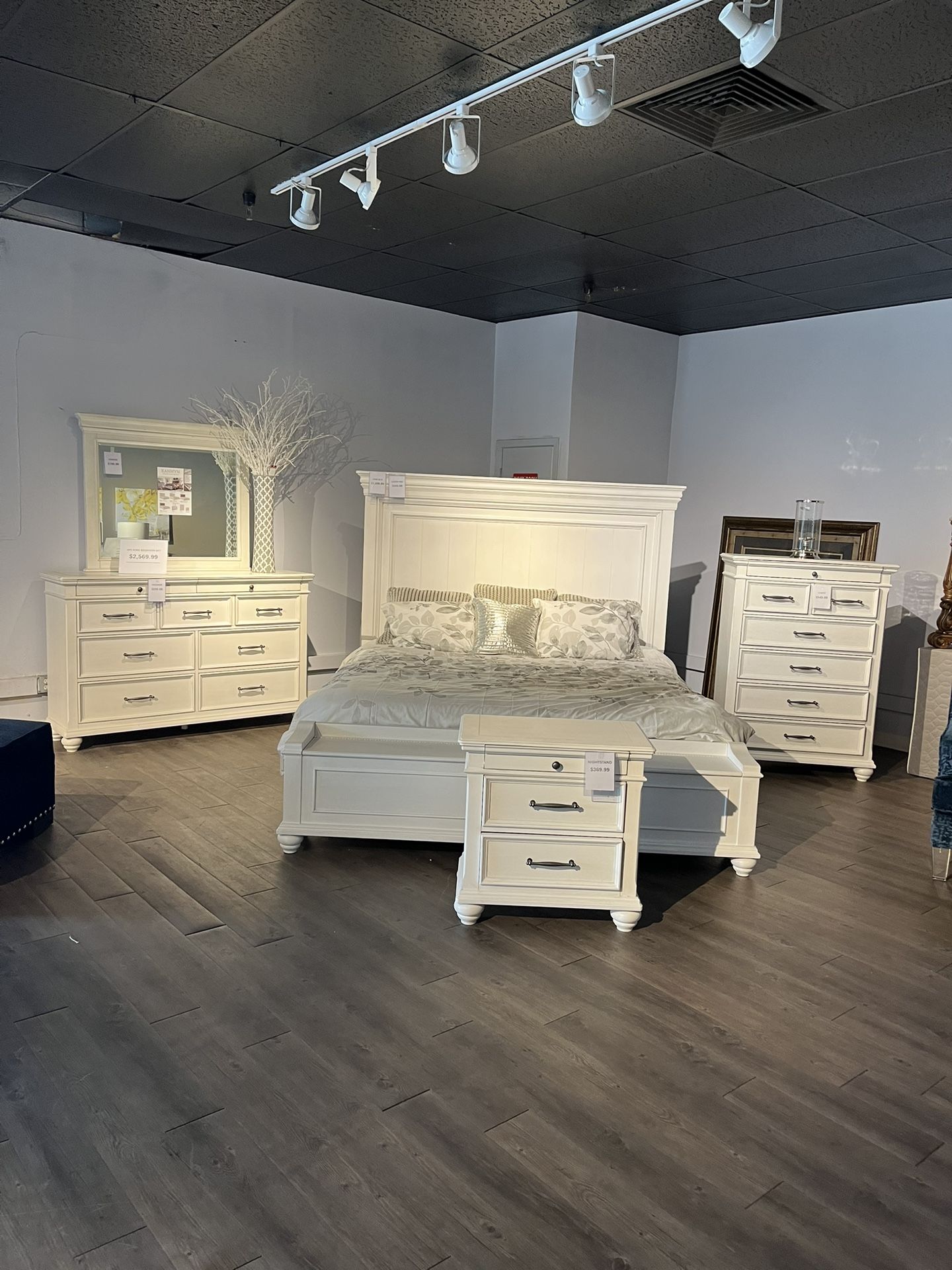 Includes: King bed, dresser, mirror and nightstand Mattress NOT included Chest sold separately At Leon Furniture, we sell new furniture at used prices! Click on our profile to view the inventory in stock. Whether you're looking for a dresser, sofa, dining/kitchen table, king/queen/twin/full bedroom set, desk, mattress, couch, sectional, bed frame or something else, we have just what you're looking for. We've been making houses into homes since 2009 by securing special pricing on our items so that we can pass those savings on to you! Why shop at Leon Furniture? ✅Financing- Snap Financing, Progressive and Acima available with no credit check required ✅12 months no interest financing available on approved credit ✅Layaway available ✅Immediate delivery and assembly available for a small fee 🏷️Price Matching - if you find this item cheaper anywhere else, let us know and we'll match that offer! Se habla espanol For more details about this specific item, please send us a message using the Chat button below to be connected with our team or visit our website. If you'd prefer to talk to someone, please give us a call using the Call for quick info button below to get connected with our Customer Support team . We look forward to speaking with you soon!