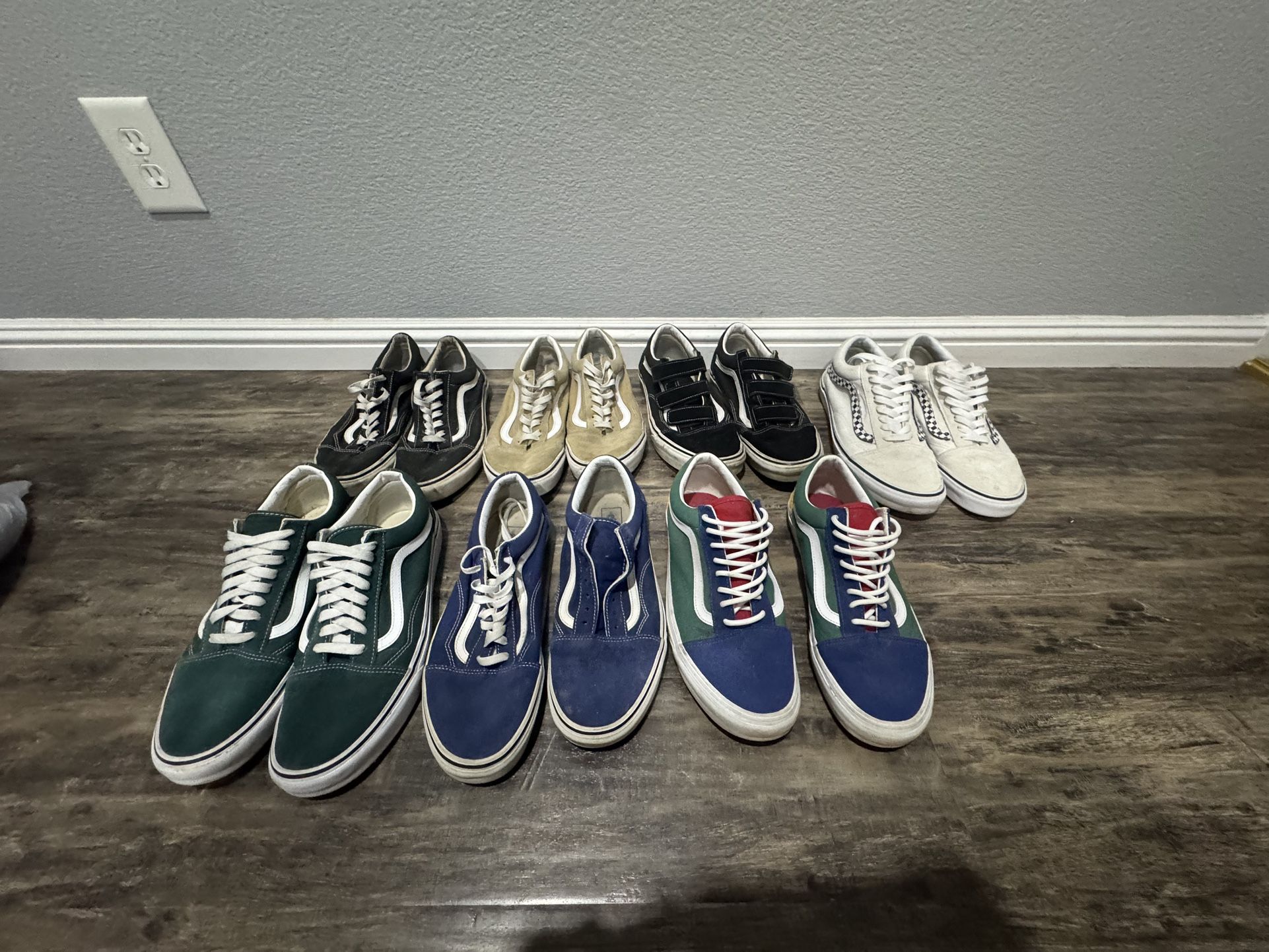 7 pairs of vans All have been used Some more than others Clearing out closet Selling all of them Need a simple clean