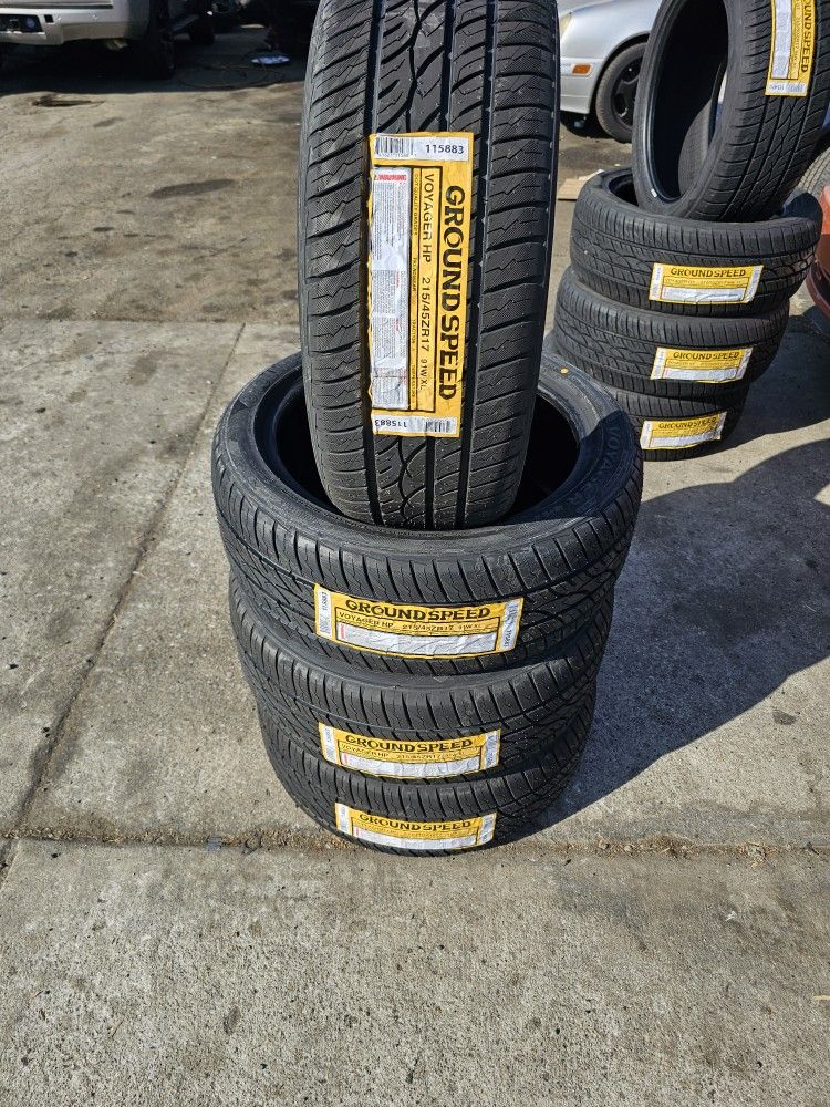 Set of 4 Tires 215/45/17 NEW GROUNDSPEED VOYAGER HP $260 for all 4 free installation and balance included Excellent economic brand 50k mile warranty Wholesale price Owners special