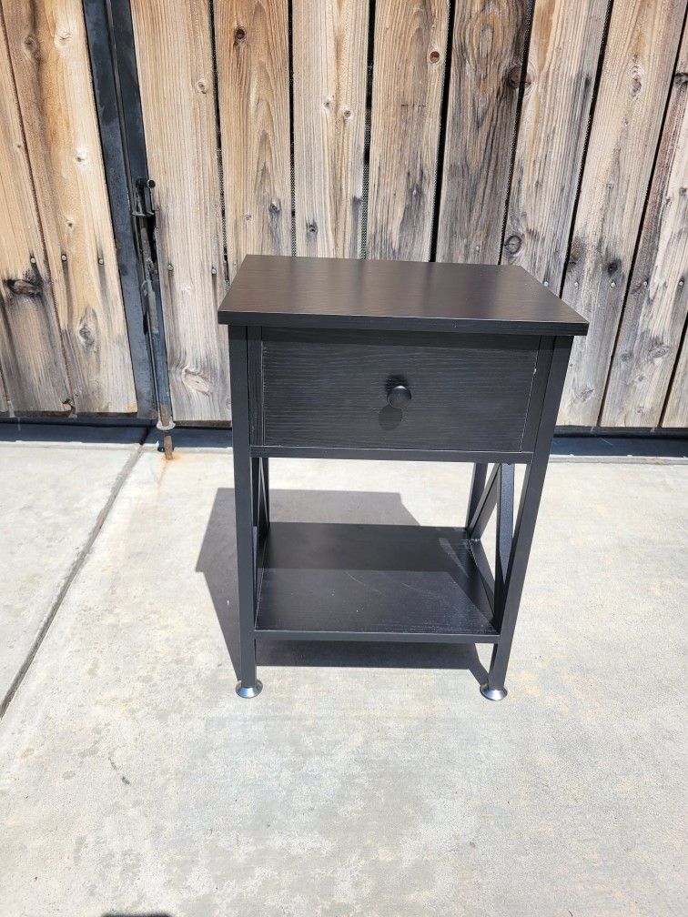 Nightstand with Drawer, Modern X-Design Side End Table, Bedside Storage Shelf for Bedroom, Living Room, Home Office, Black