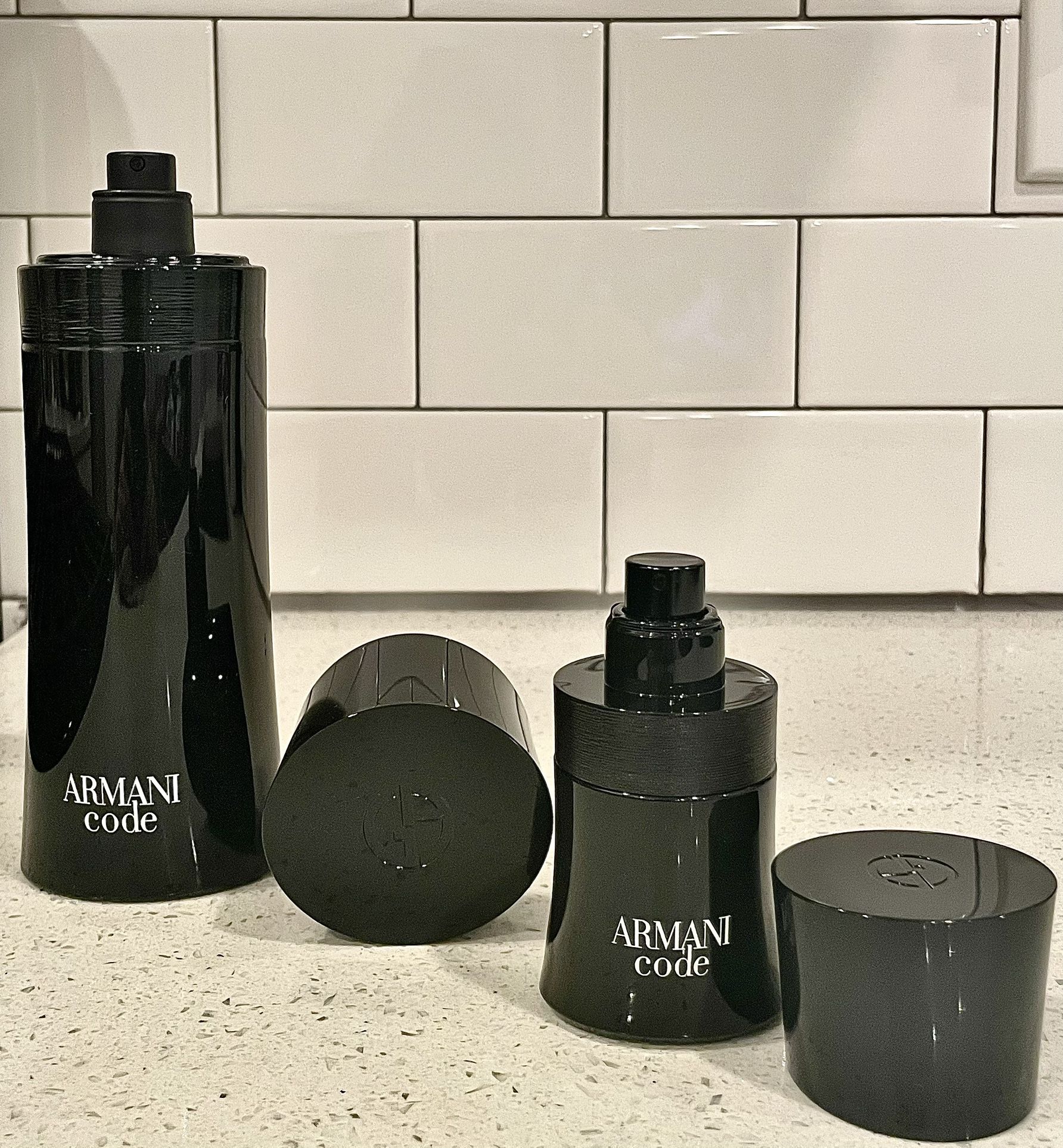 This Authentic Giorgio Armani Code Eau de Toilette men’s fragrance has one brand new 6.7oz bottle (without box) and a used 1oz bottle that is 95% full (without box). This listing includes two (2) original Armani Code bottles: one full-size bottle and one travel-size bottle. Both bottles include original spray atomizers and original caps. This item is sold as is and and fill levels are approximate estimates only and buyers must rely on photos provided. - Condition: Used - Estimated Fill Level: 6.7oz (New) / 1oz (95%) - Fragrance Type: Armani Code Eau de Toilette - Size: 6.7oz & 1oz - Batch: 38W200H / 22W21D8 - Sprayer: Fully functional, sprays properly - Box: Not included Fell free to reach out if you have any questions.