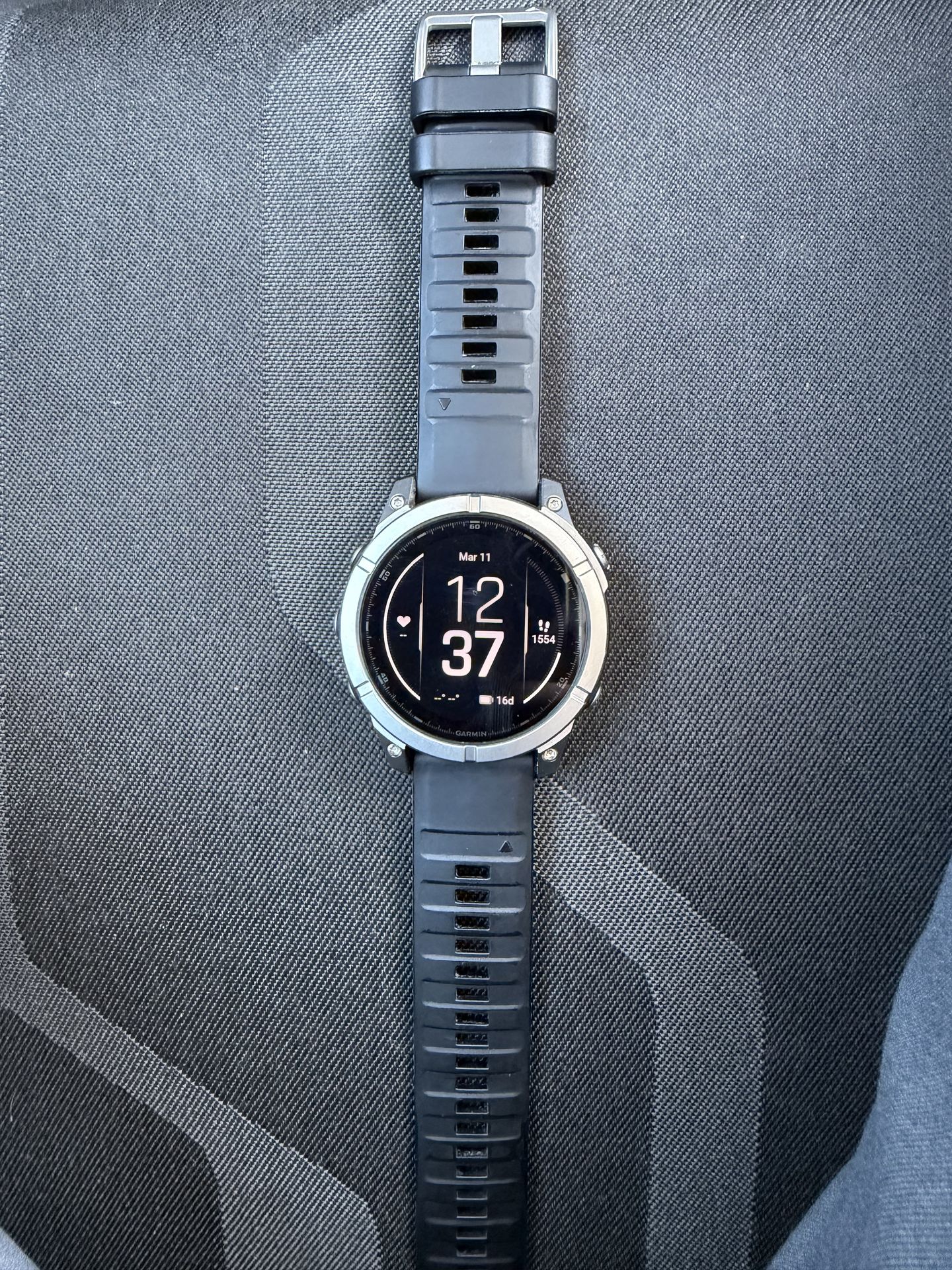 fēnix® E – 47 mm AMOLED, Stainless Steel with Black Silicone Band Very lightly used