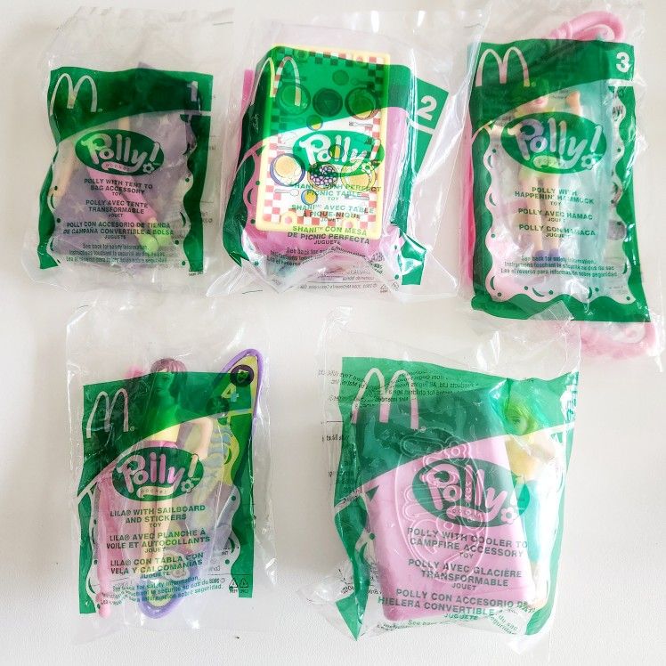 003-2004 POLLY POCKET 1-5 MCDONALD TOYS Campfire Lila Sail Tent Picnic Table New in packaging