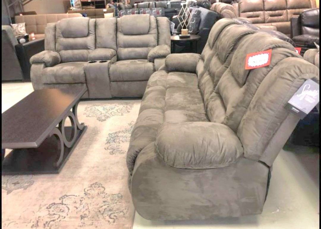 McCade Cobblestone Reclining Living Room Set Sofa And Loveseat