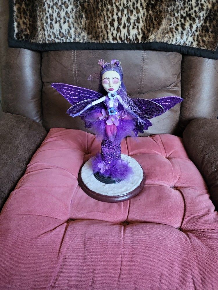 Used/Great Condition Monster High Doll. Repainted and redone by artist. Doll is in great condition and just beautiful in purple. She is glued to her base. The artist called this one "Just Breathe". Beautiful detail.