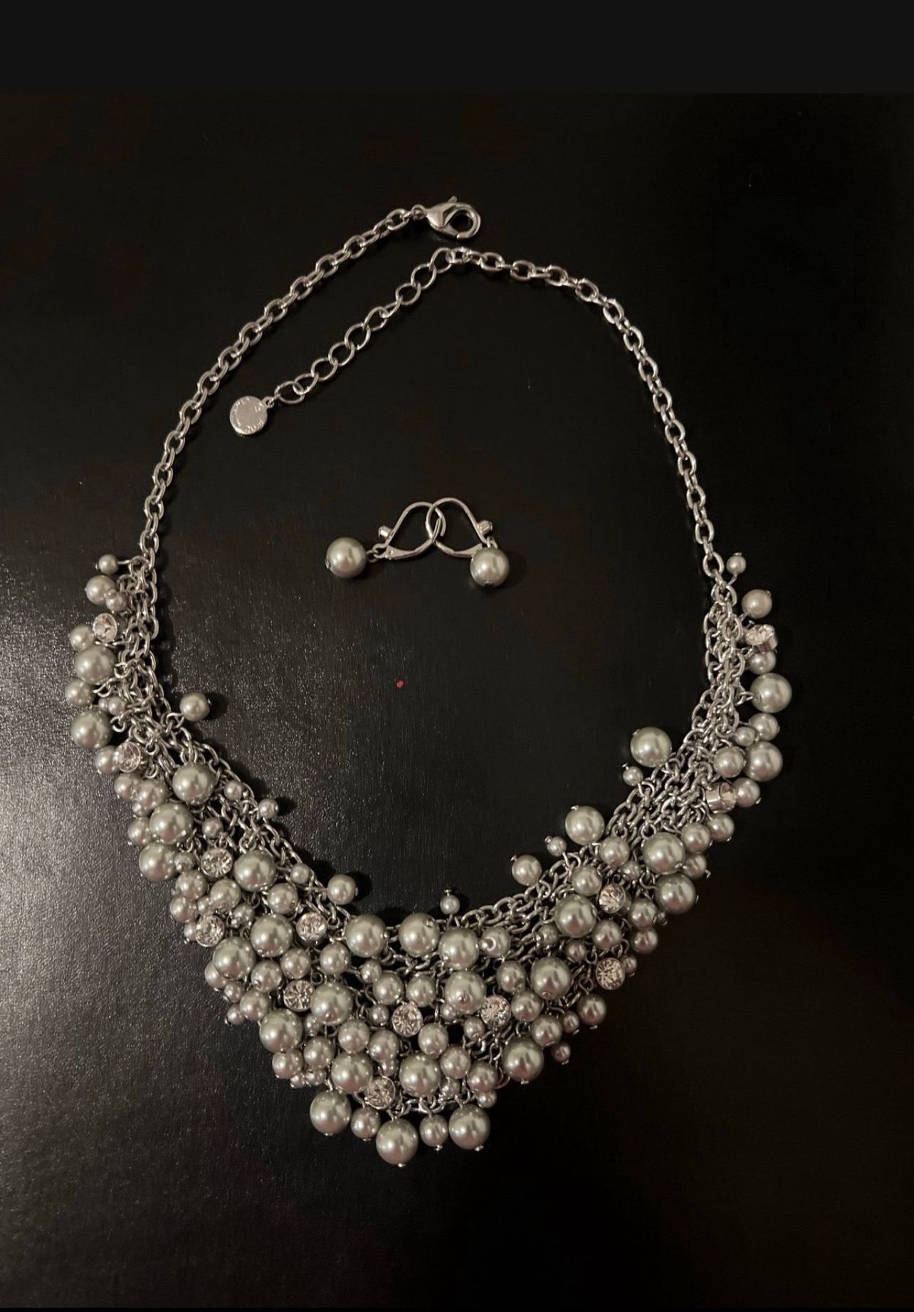 Charter Club 16" Glass Pearl Cluster Bib, An elegant assortment of glass pearls create a lovely bib necklace from Charter Club. Crafted in silver-tone mixed metal. Approximate length: 16 inches + 3-inch extender. With earrings!!!!