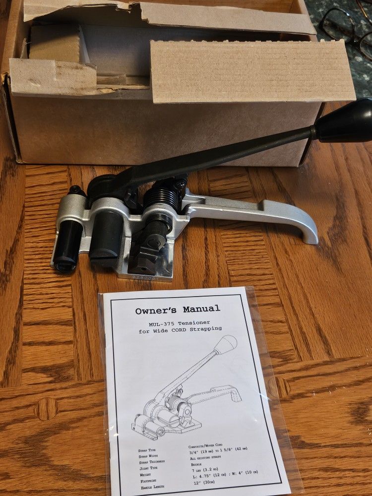 Strapping Type: woven, composite, or bonded cord. Strapping size: 3/4 to 1 5/8 Effortless cutting, easy lifting off strapping, patented vertical gripper motion, patented cutter design, all steel construction. FOR PICK UP ONLY!! New in open box, never used. Asking $65 Cash or zelle please.