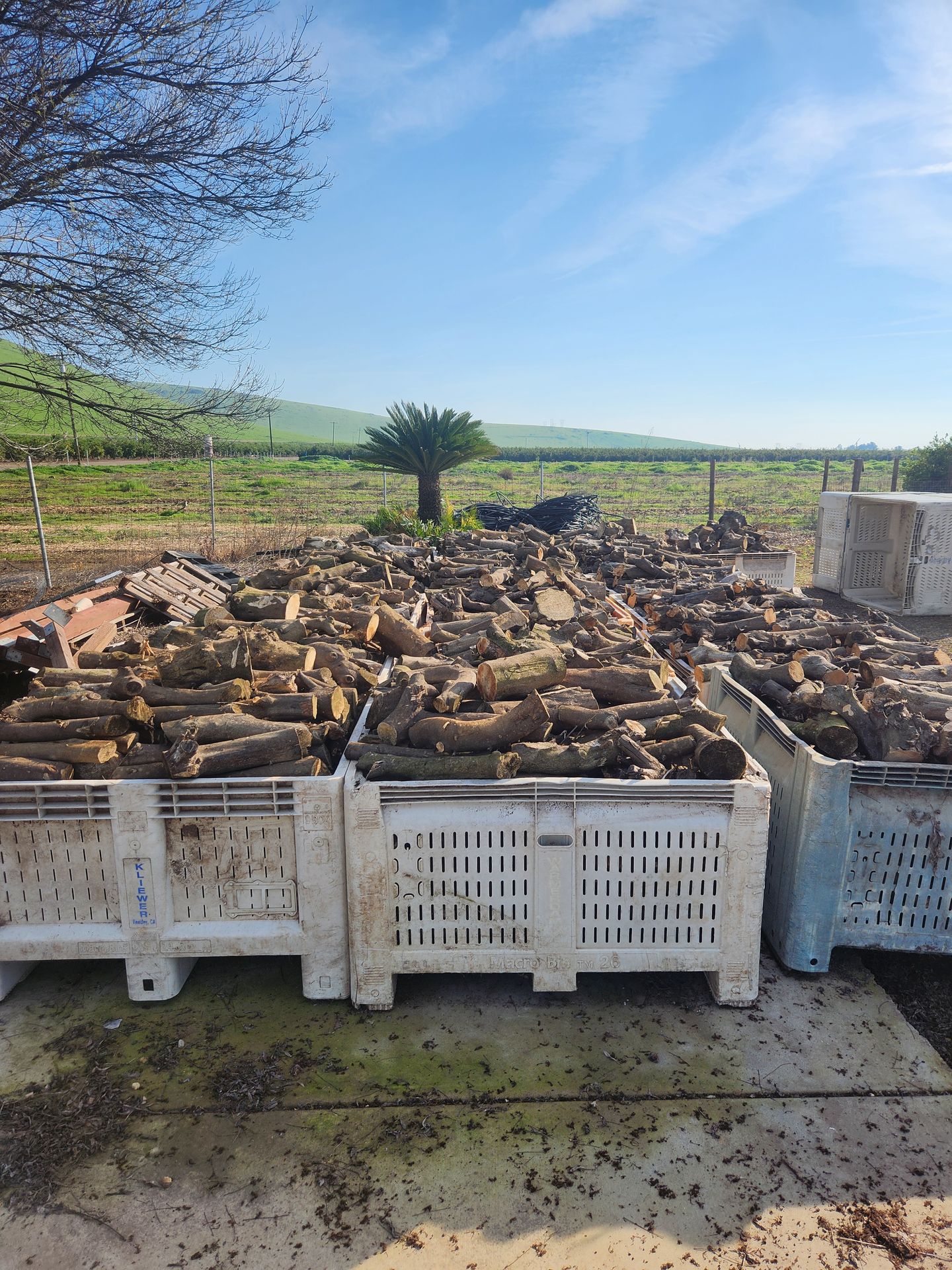 Orange wood, cut to size, burns clean and hot