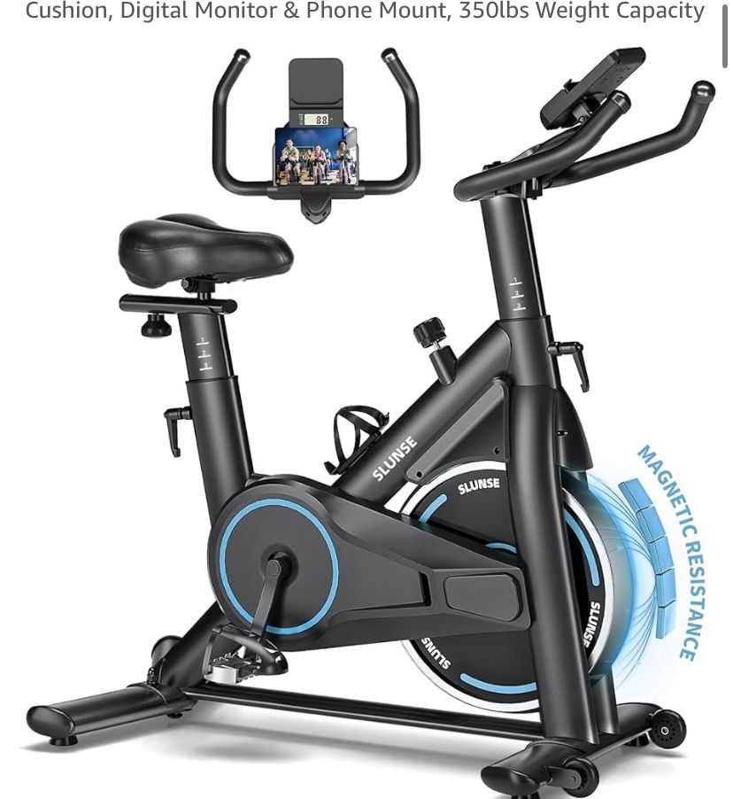 Exercise Bike, Adjustable Magnetic Resistance Brake Stationary Bikes for Home, Quiet Indoor Cycling Bike with Upgraded Seat Cushion, Digital Monitor & Phone Mount, 350lbs Weight Capacity In originally sealed box Pick up only Originally at $279