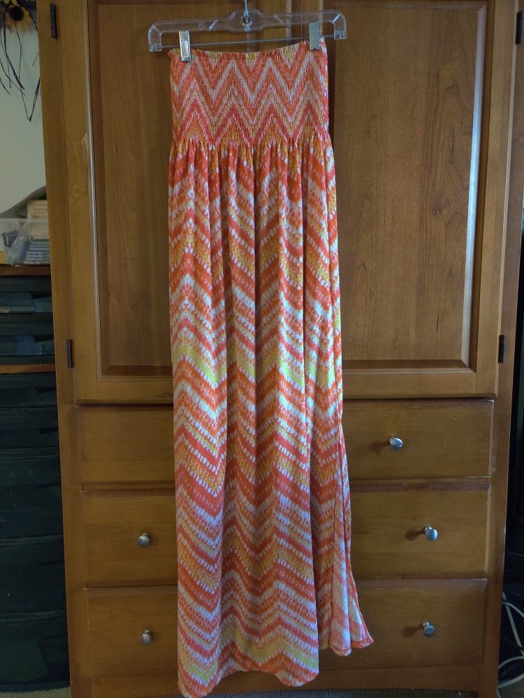 Strapless Summer Maxi Dress, Orange Yellow Floor Length, size 8-10