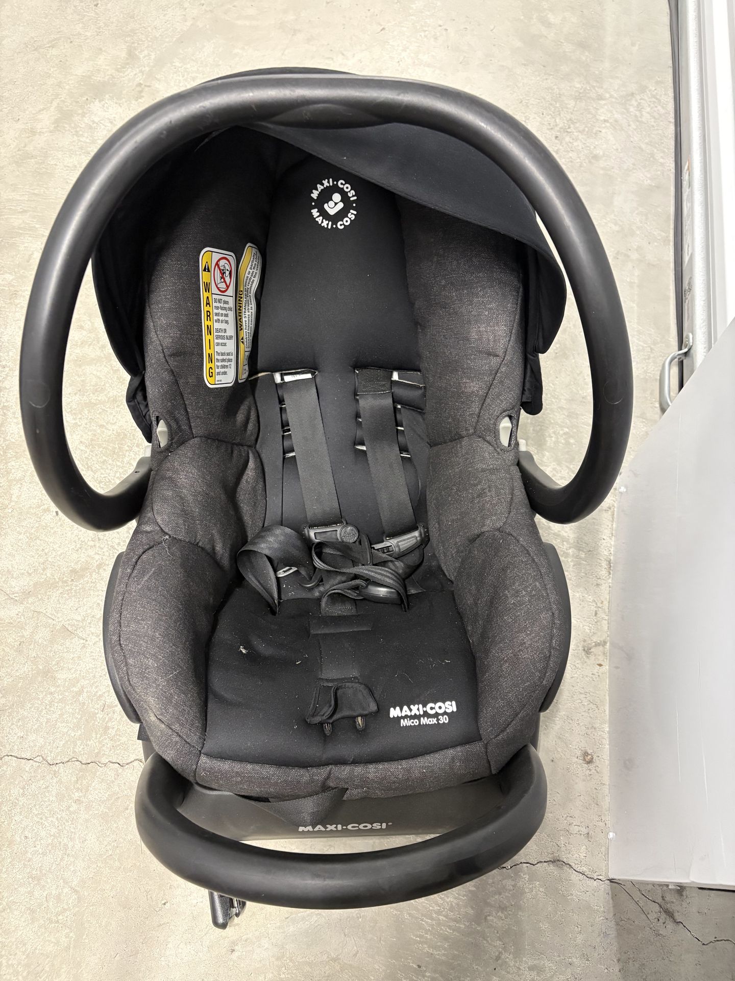 Like new, gently used Maxi-Cosi Mico Max 30 infant car seat in excellent condition. Designed for infants 4–30 lbs, this lightweight seat features superior side impact protection, a comfortable infant insert, and an adjustable canopy for added shade and privacy. Comes with an extra base — perfect for two-car versatility, whether for another vehicle or grandparents. Easy to install and convenient for busy families. From a non-smoking, pet-friendly car. Clean and well cared for.