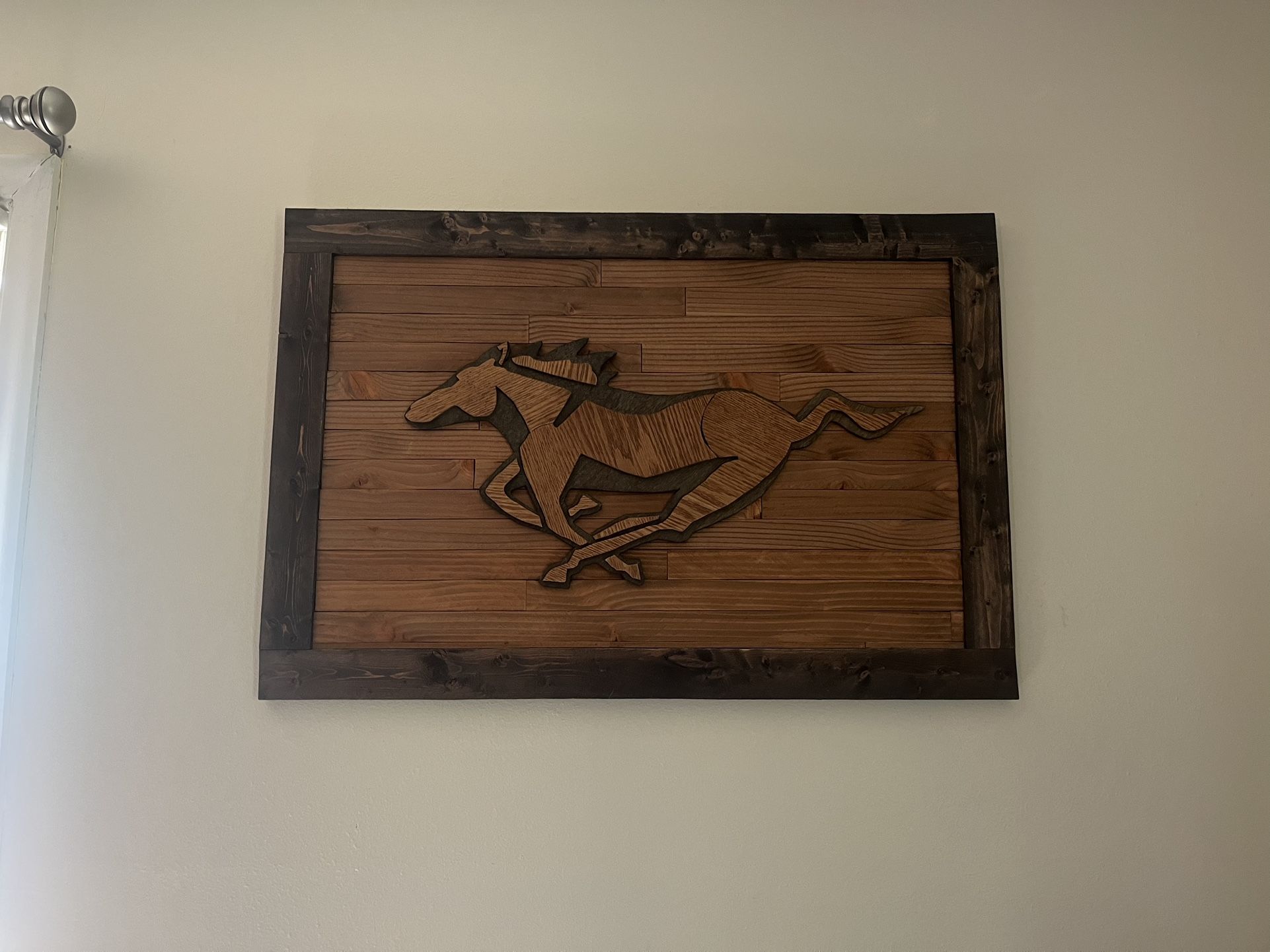 37” w X 25” l beautiful piece, just doesn’t go with my decor. Was a gift that was purchased at an art show. Back says Whitman woodworking.