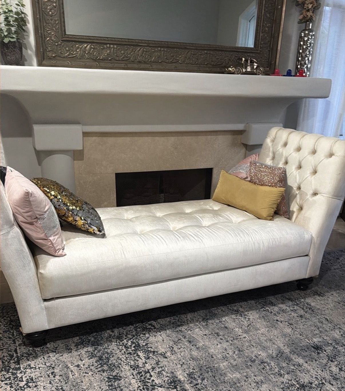 Beautiful tufted Chaise lounge The button-tufting across the seat is a classic detail.