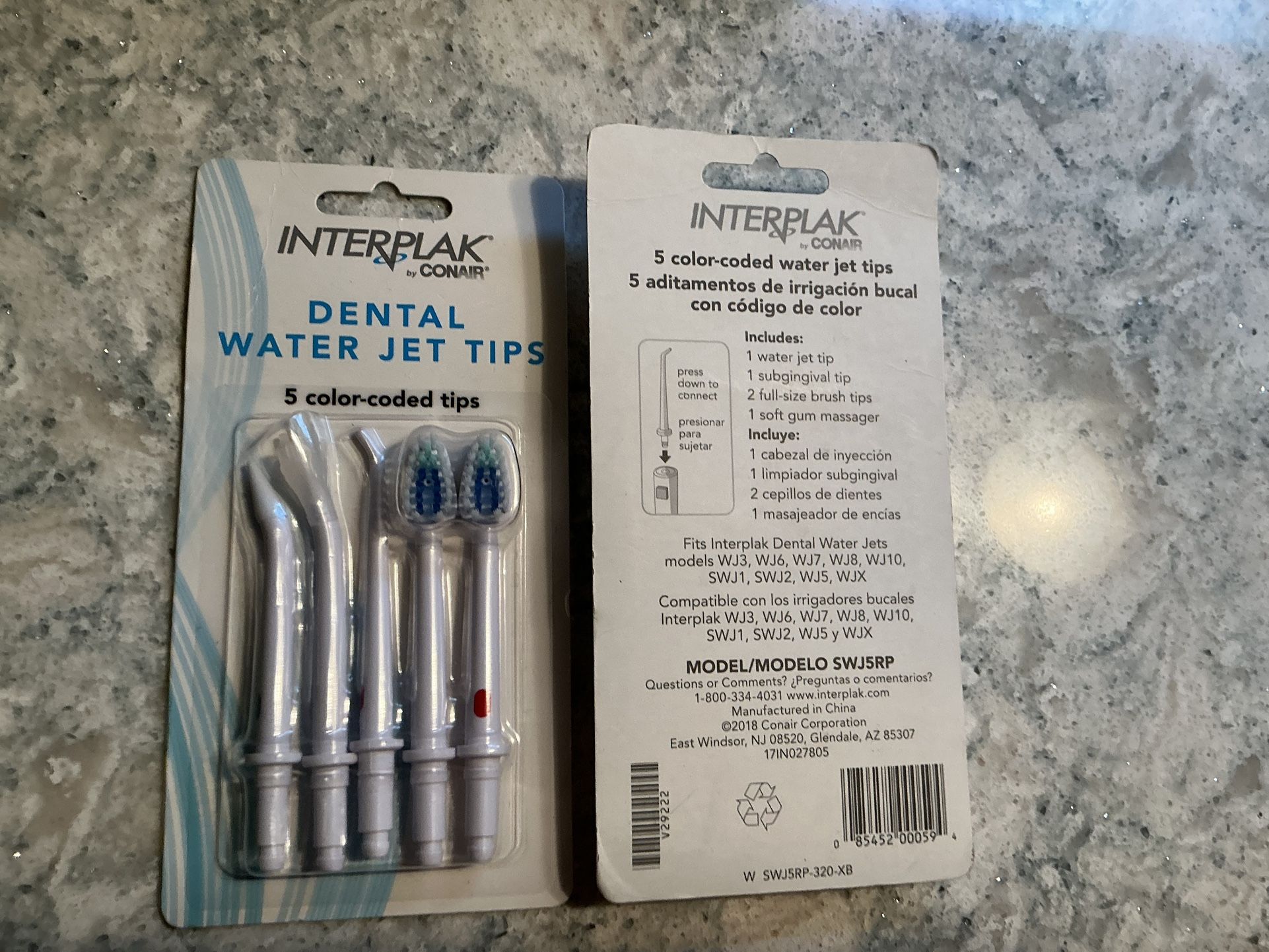 New Interplak by Conair Dental Water Jet Tips 5 Color Coded Tips SWJ5RP. Lot Of 2
