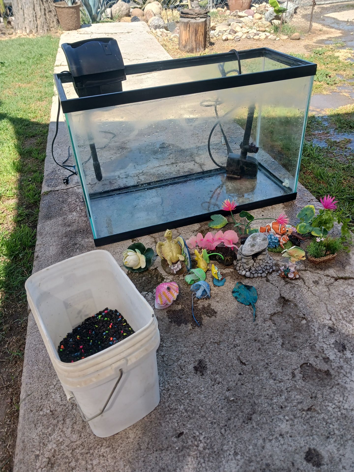 Located in delano over 200$ in value sadly have to get rid of it 100$ obo 2 and a half foot by 1 and a half foot probley 30-50 gallon both filters work good aswelll
