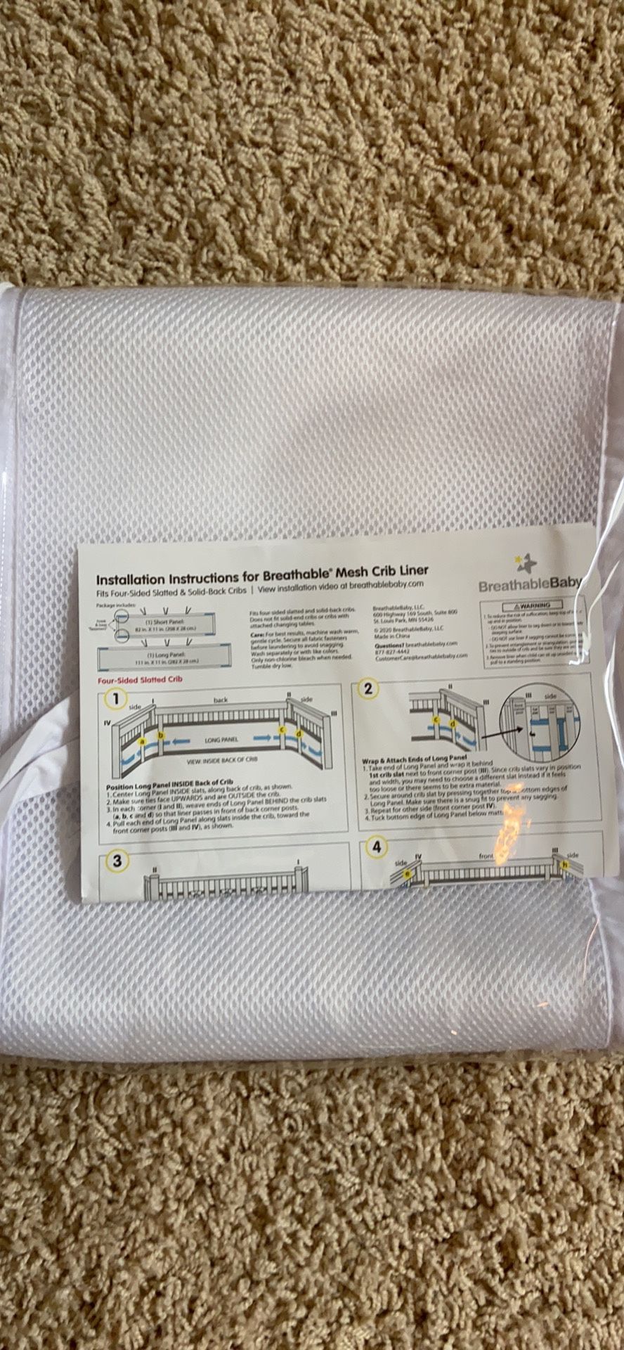 Breathable mesh crib liner