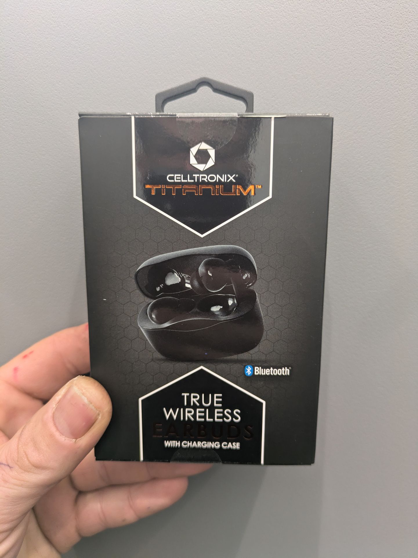 Brand new Celltronix Titanium true wireless earbuds, still factory sealed. Bluetooth earbuds with charging case—easy to use and great for everyday listening, calls, or workouts. Features: • True wireless Bluetooth connection • Charging case included • Compact and lightweight • Good for music, calls, and daily use Perfect if you need a simple pair of wireless earbuds without paying high retail prices. Local pickup available.