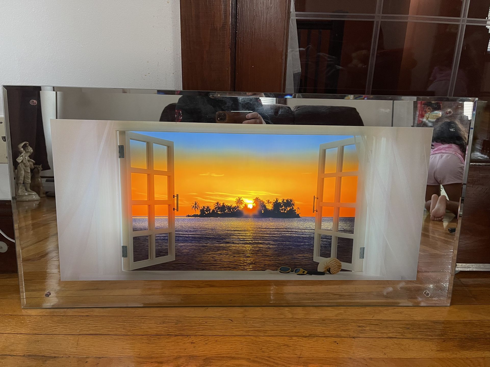 Works great relaxing Illuminated & Sound Beach Mirror Picture