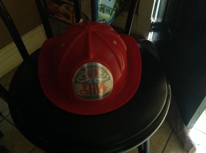 Toy red fire chief hat.