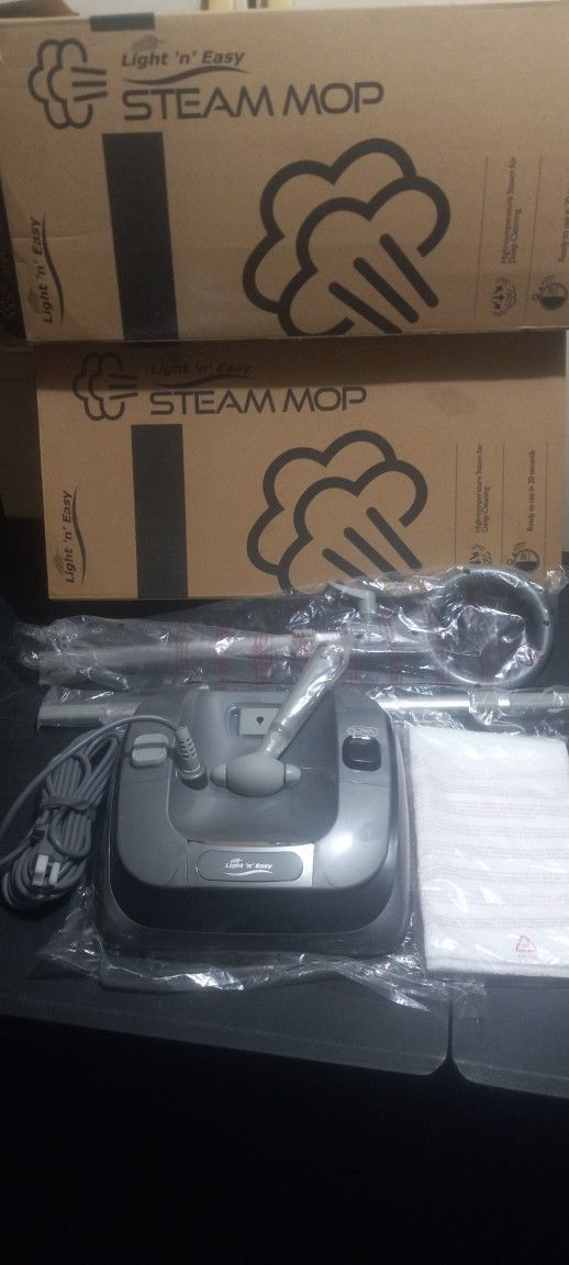 2 Light 'N Easy steam mops One box is open but still in original packaging including multiple extra pads. Second one unopened