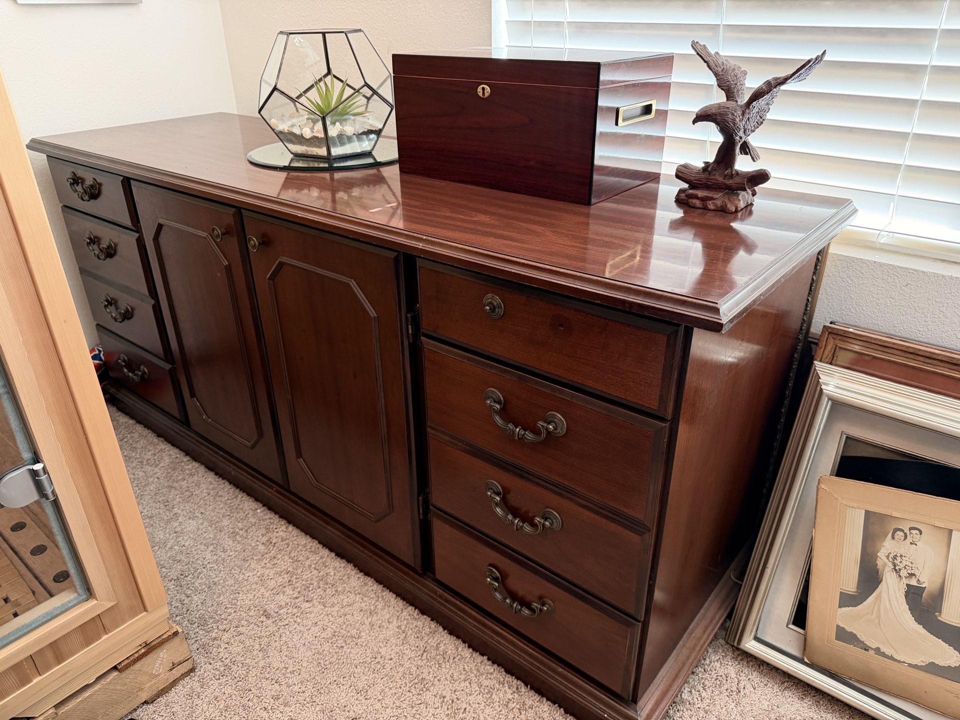 Cherry desk and matching credenza