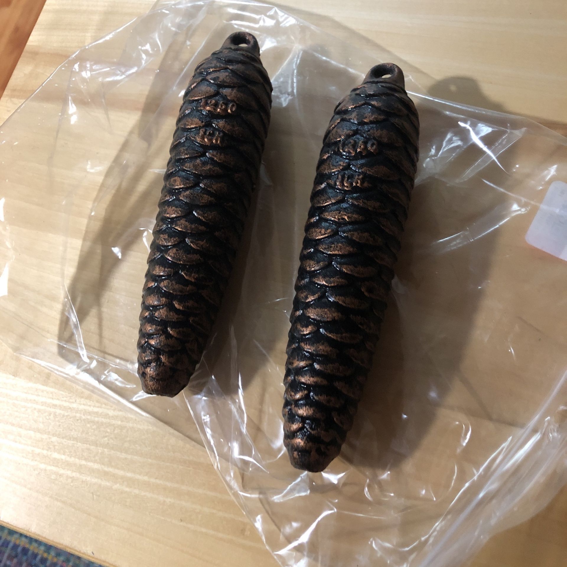 Up for your consideration… Two very nice pinecone cuckoo clock weights… The clock was sold and we could not find the weights at the time… $10 each or both for 15 bucks… Thanks for looking