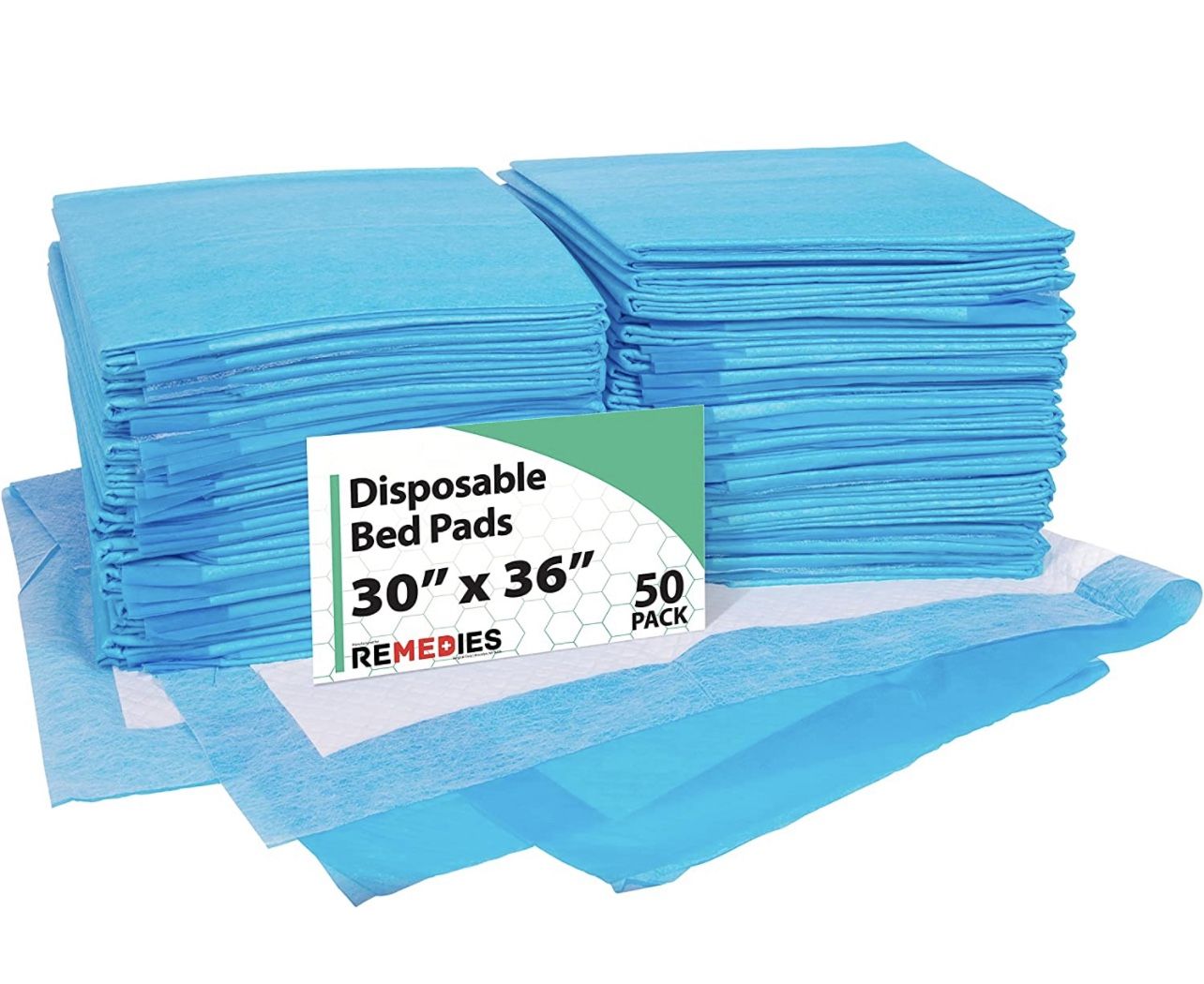 REMEDIES Underpads Disposable Super Absorbent Bed Protection, Large 30" X 36", 85 Gram, 3g SAP (100 Count)