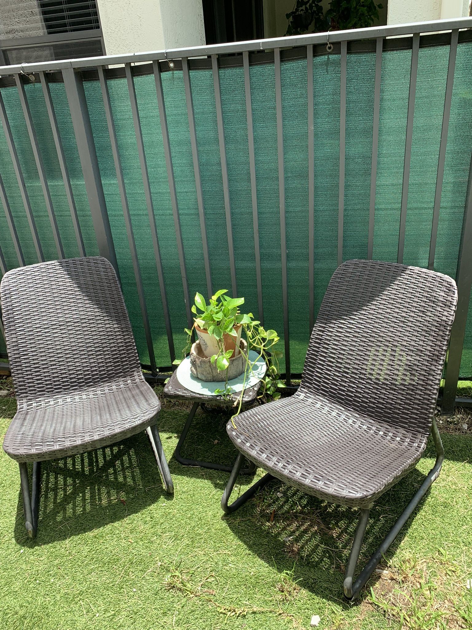 Keter Rio, 3 piezas, Juego de muebles de mesa y silla para patio, jardín, exteriores, todo tipo de climas, Marrón Whiskey