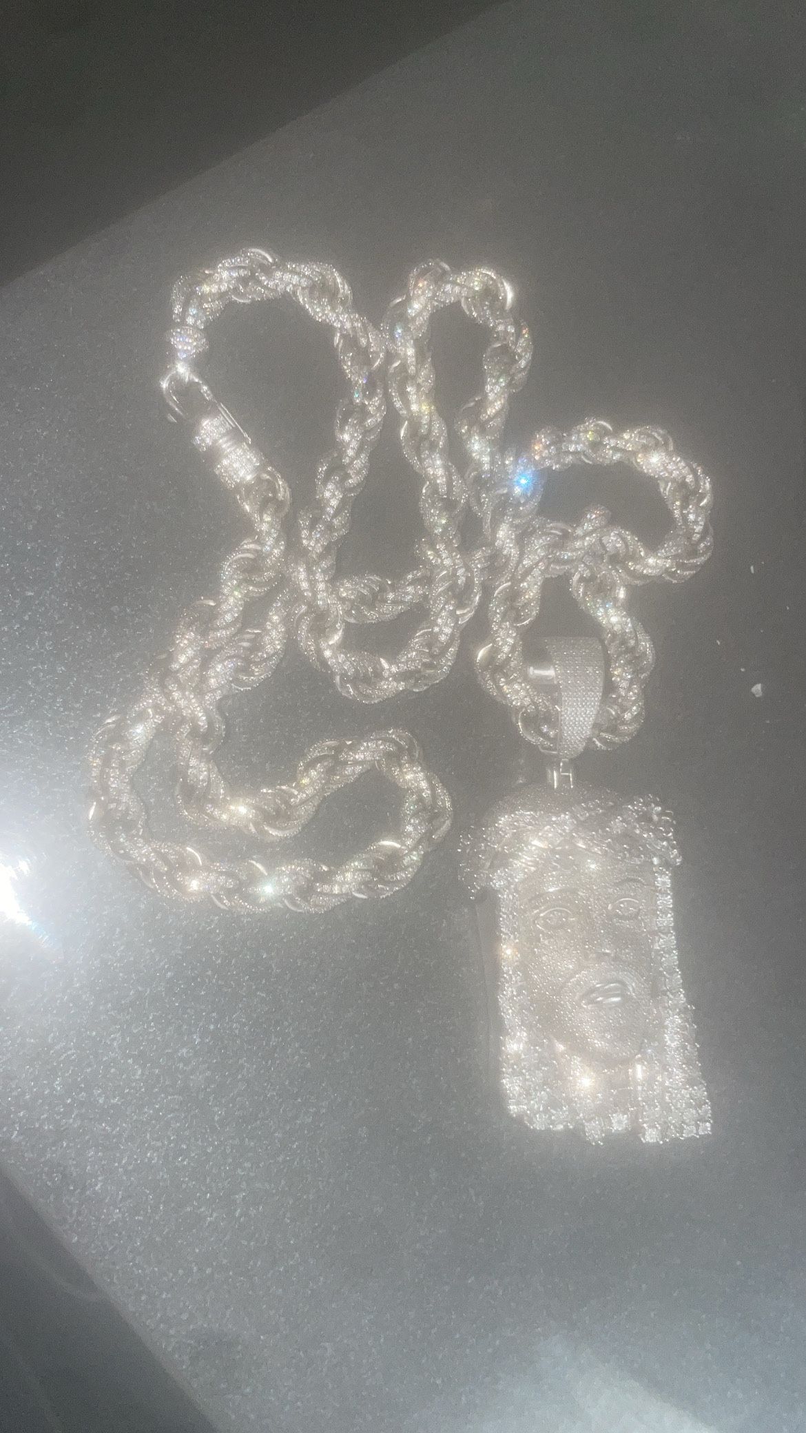 Diamond Rope Chain Diamond Jesus Face Pendant