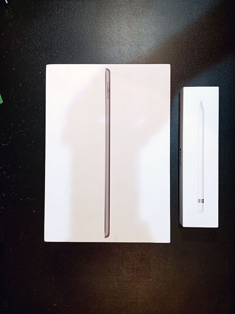 Empty iPad 9th gen and Apple pencil cases with. paperwork, in good condition.