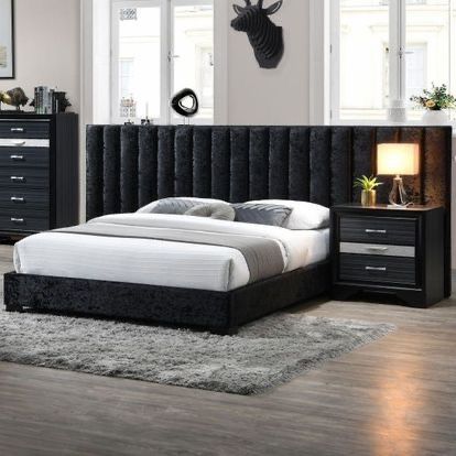 Brand New Black Crushed Extended Headboard Bed - AVAILABLE IN KING and QUEEN