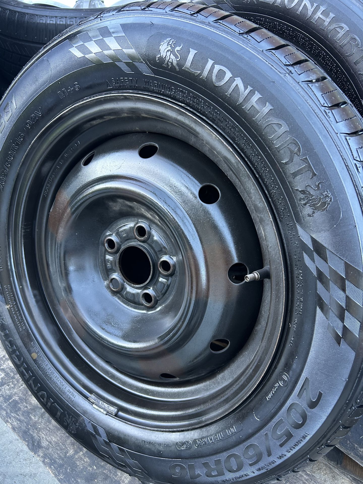 TIRES SIZE: 205 / 60 RIMS-16 5. LUGS. 5. BIRLOS BOLT PATTERNS: 5 X 100 FOUR TIRES: 99% GOOD CONDITION THE TIRES USED AND ARE BEING SOLD AS IS STEEL WHEELS GOOD CONDITION CASH ONLY