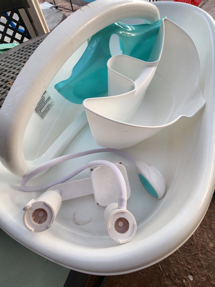 Baby /infant / newborn bath with massage and shower head rinse unit . Bubbling luxury spa ,newborn sling. I have unopened new net . Green valley 89052