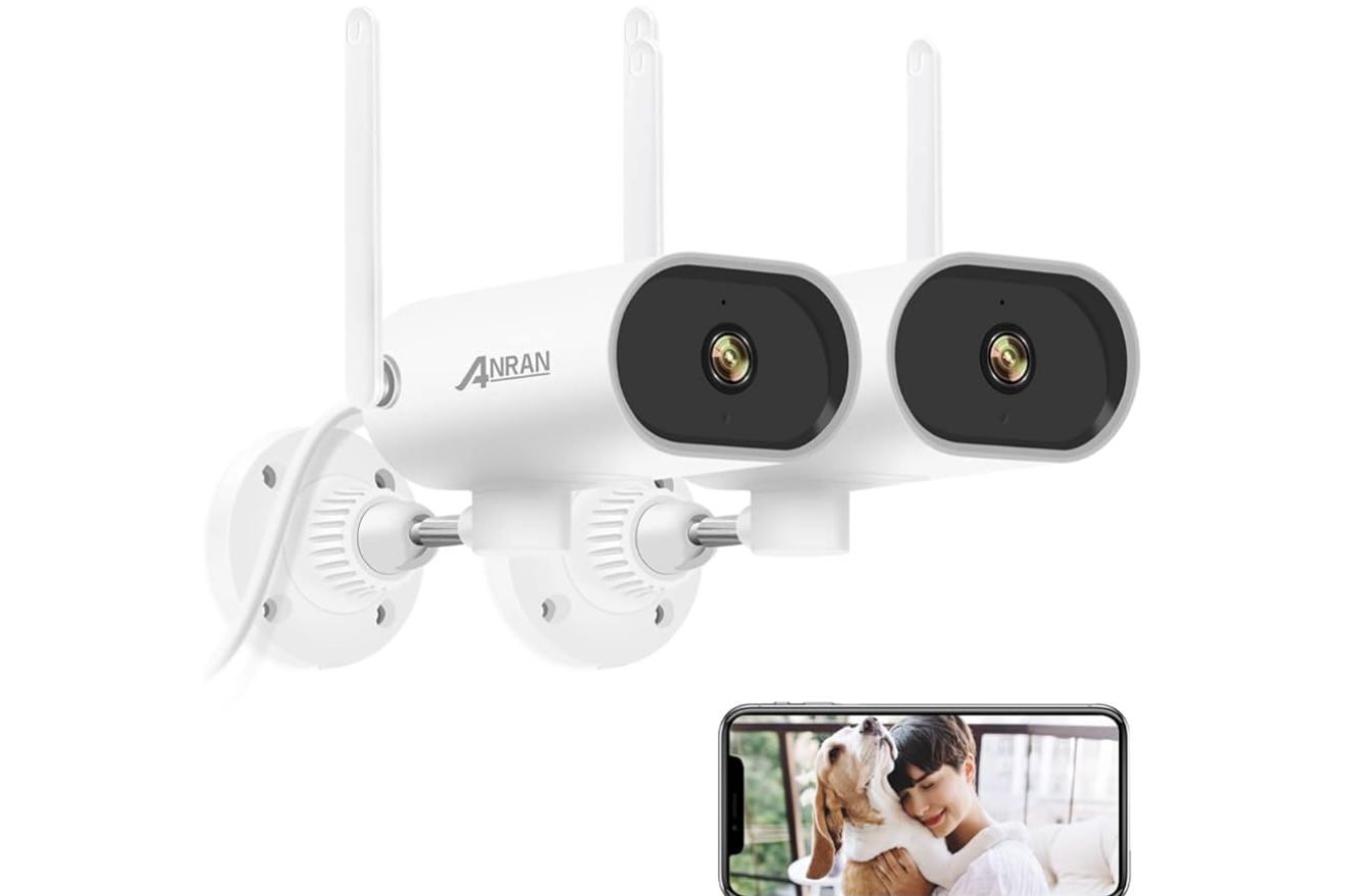 ANRAN Security Camera Outdoor, 1080P Pan Rotation 180° WiFi Outdoor Security Cameras for Home, IP65, Night Vision, Plug-in Power, SD and Cloud Storage, 2.4G WiFi only, B4 2-Pack…