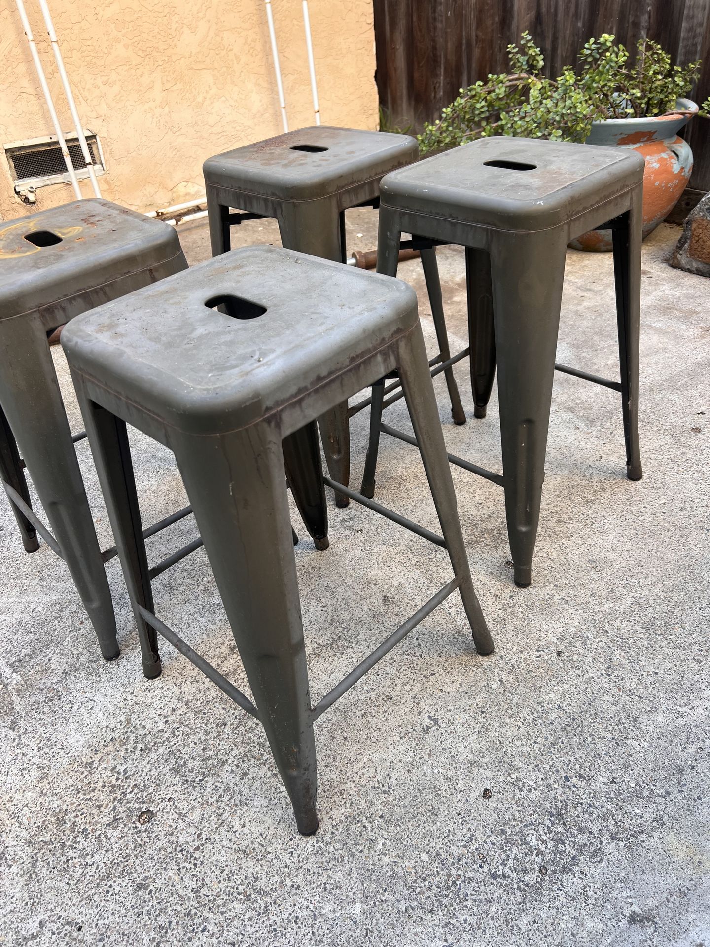 This set is great for someone who likes DIY projects and revamping furniture! Two of the stools have rust on the top, so should be buffed out. With a fresh coat of paint, these will be brand new!! These can be indoor or outdoor.