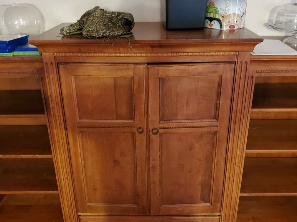 Lots of space and shelves to put your stuff. The cabinet opens to reveal a big space.